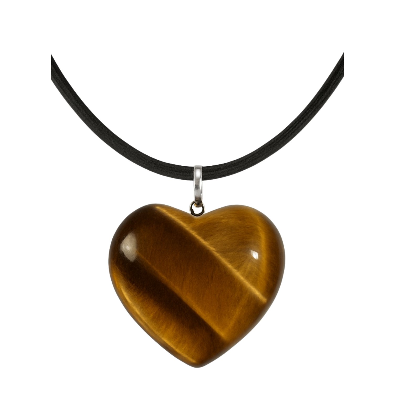 Collar con dije de corazón de ojo de tigre que fortalece la confianza y la protección