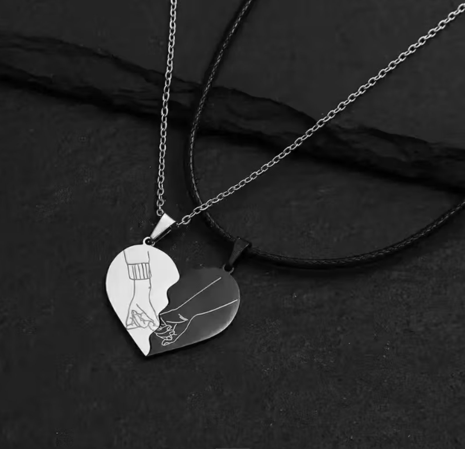 Set de collares de pareja con dije de corazón elaborado en acero inoxidable, diseñados para representar el amor, la conexión y el compromiso. Resistentes, duraderos e ideales para uso diario. 💞