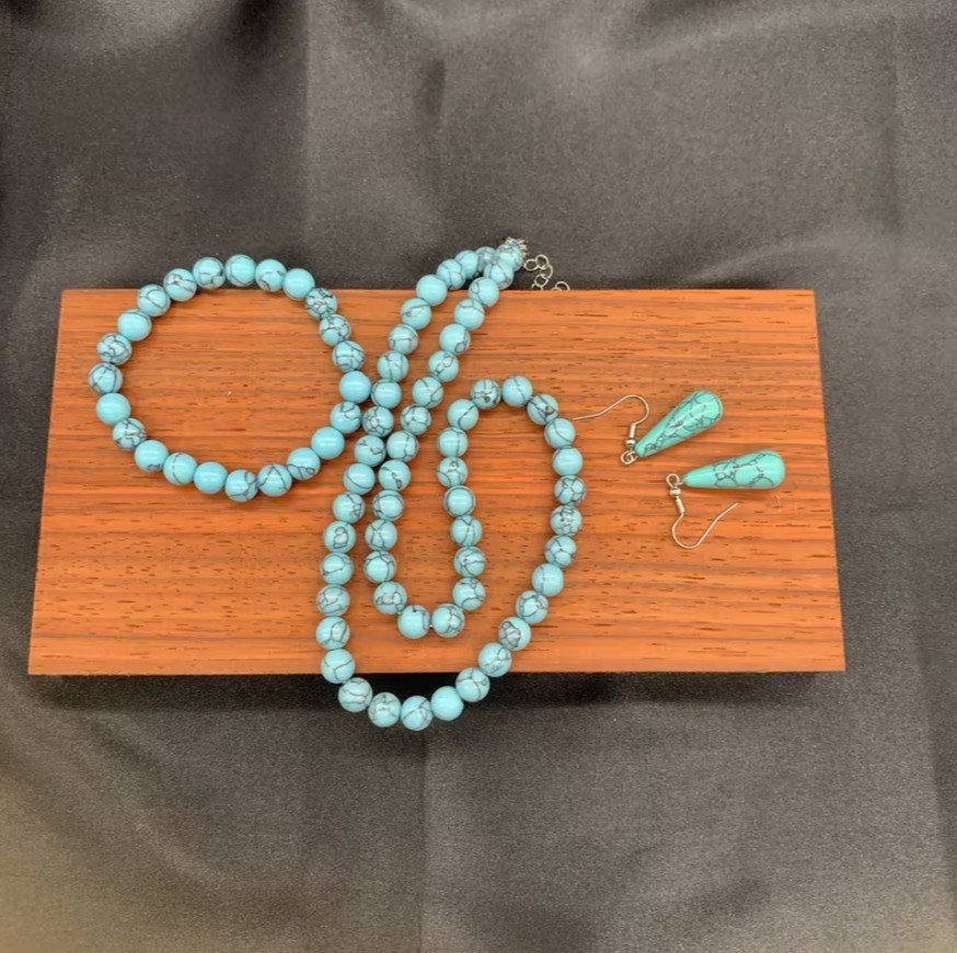 Conjunto de joyería de Turquesa natural, piedra asociada a la protección y la armonía.