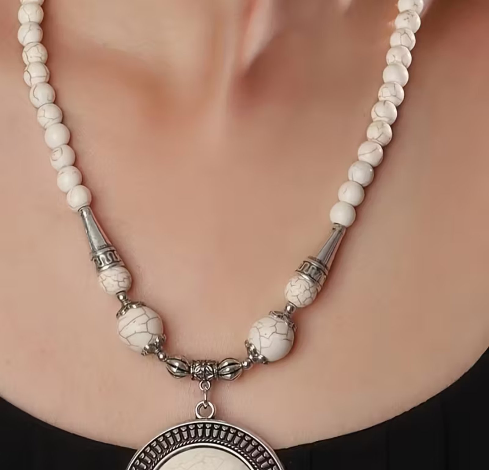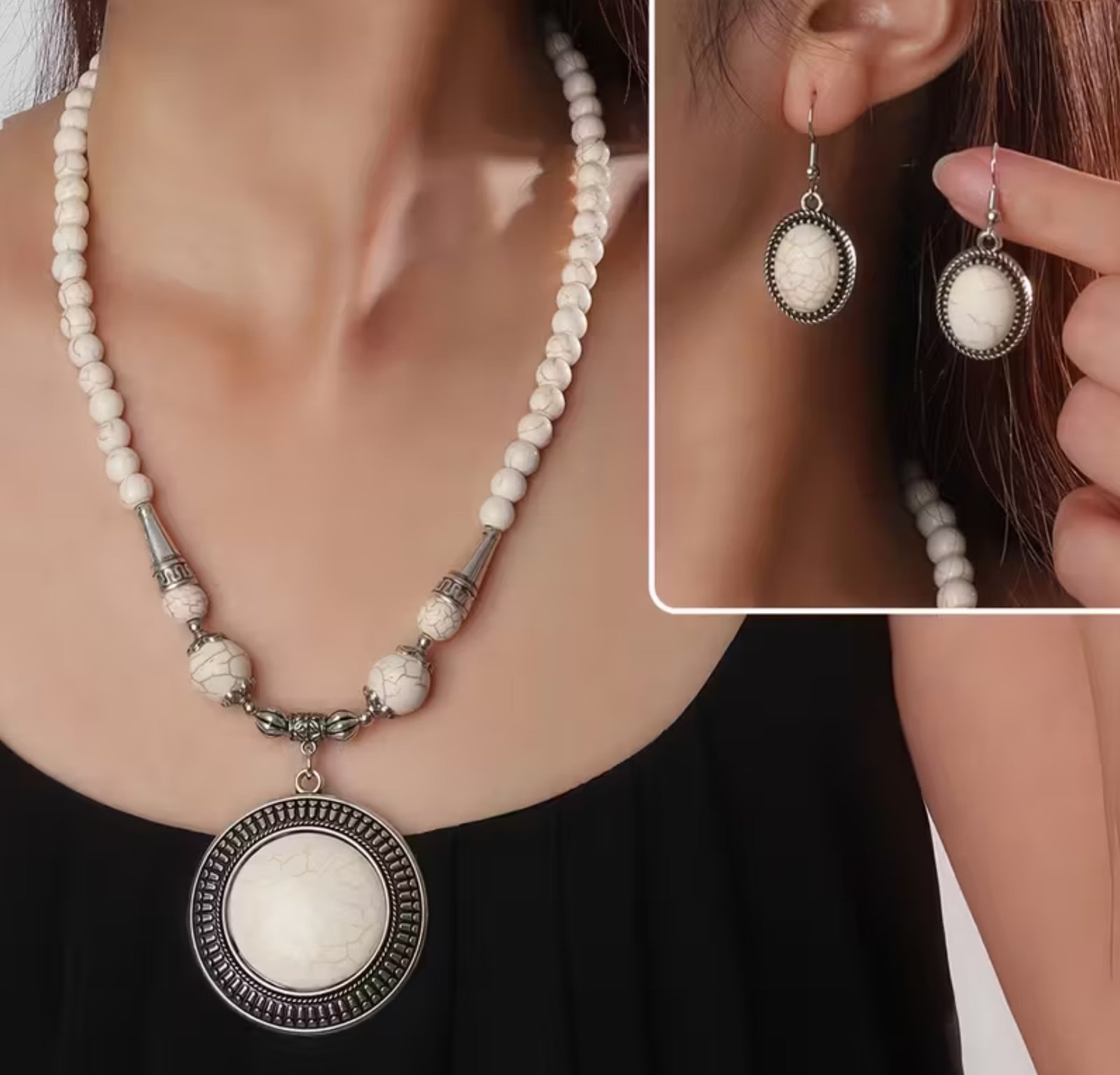 El conjunto Princesa de turquesa blanca (3 piezas) combina diseño elegante y un estilo delicado de inspiración natural. La turquesa blanca se asocia con la calma, la protección y el equilibrio emocional, lo que lo convierte en un accesorio versátil para el uso diario o ocasiones especiales. Al ser piezas elaboradas con piedra natural, pueden presentar ligeras variaciones en color y vetas, características propias del material.