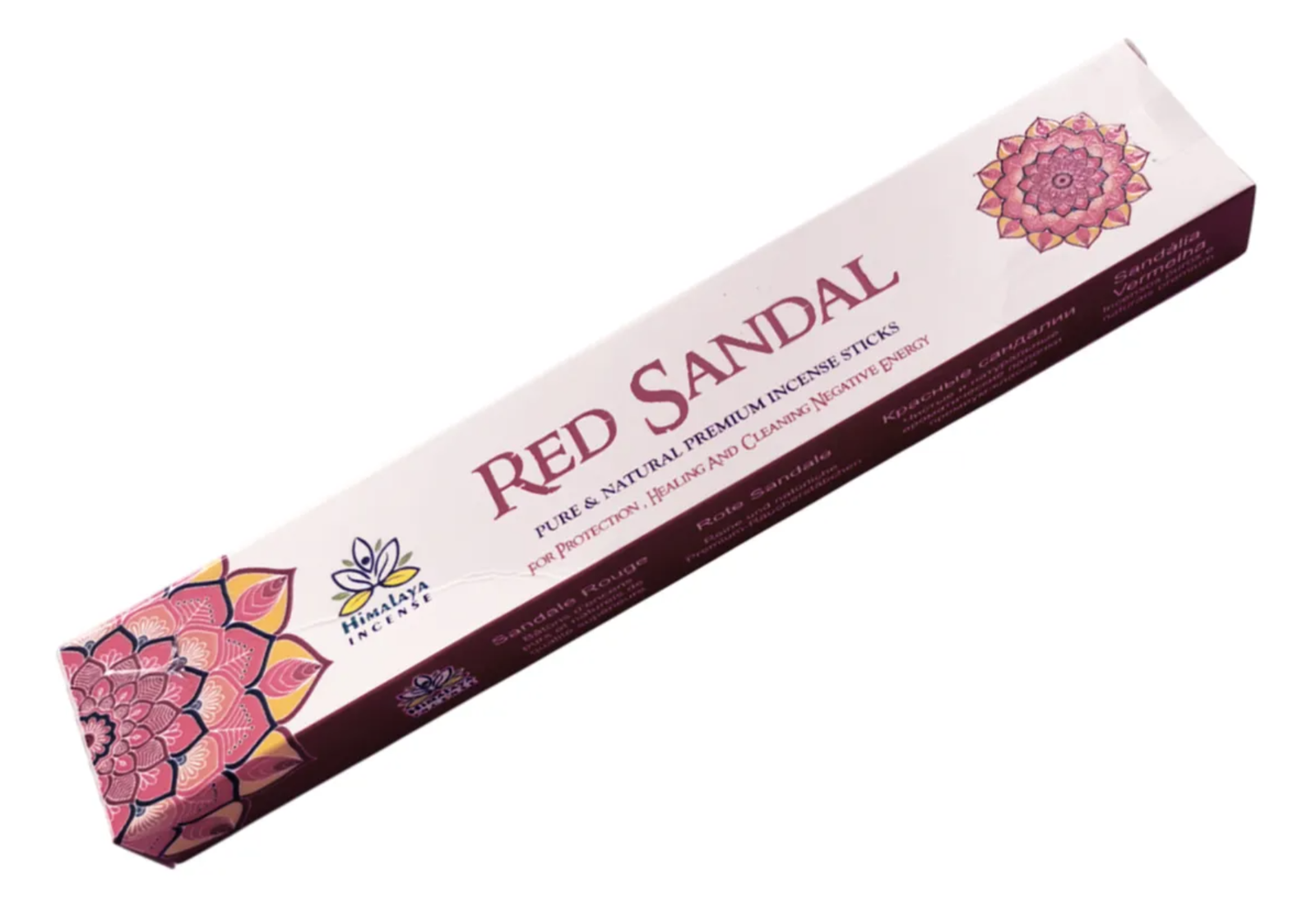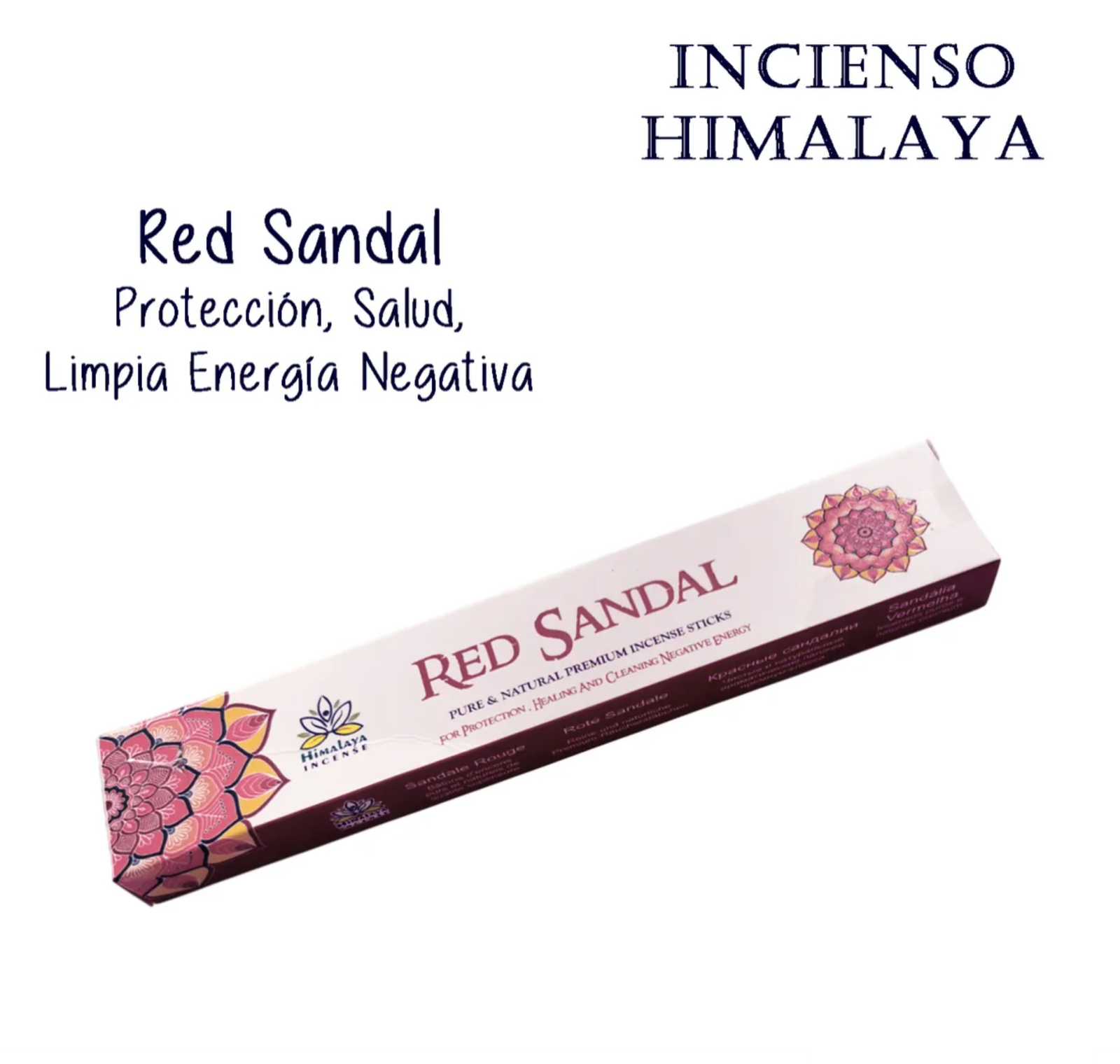 Incienso Himalaya Red Sandal, elaborado para crear un ambiente de calma y equilibrio. Su fragancia amaderada y envolvente es ideal para acompañar momentos de meditación, relajación o para armonizar tus espacios con una sensación cálida y espiritual.