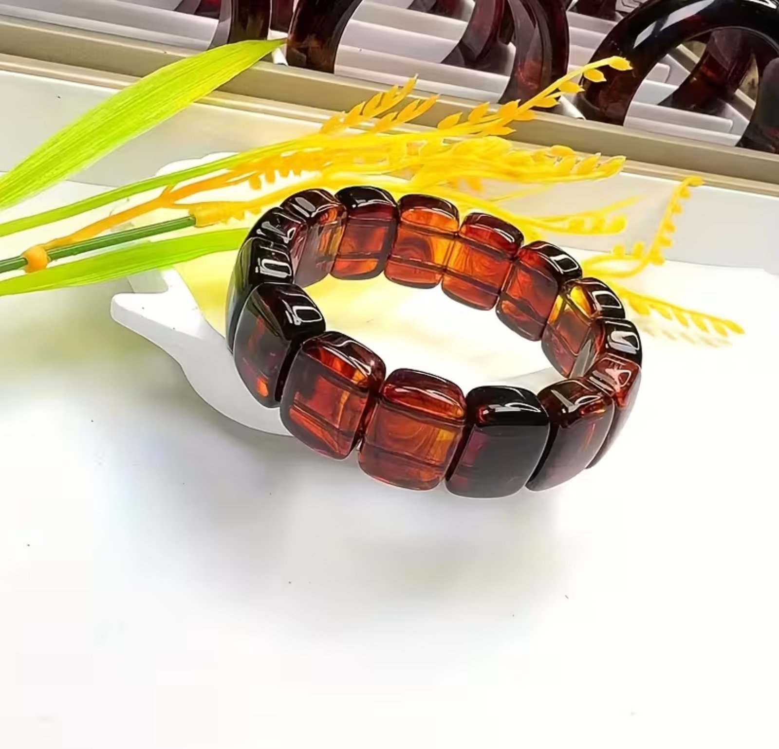 Pulsera de ámbar birmano natural, símbolo de protección y energía cálida.